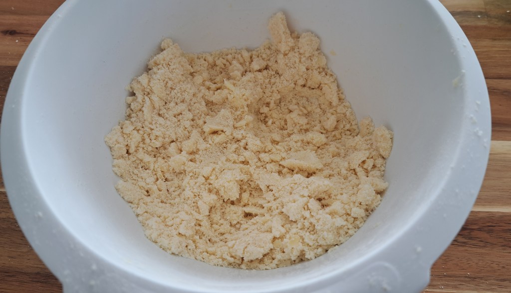 - Pétrir du bout des doigts jusqu’à obtenir un aspect sableux.