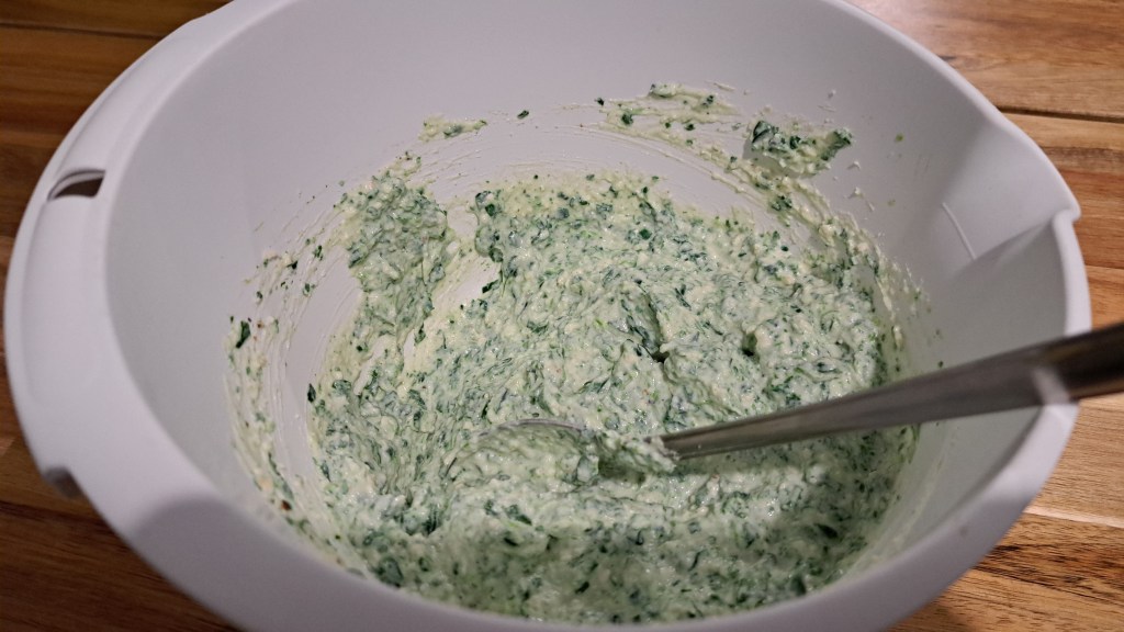 - Cuire les épinards hachés à la crème si ils sont surgelés (comme moi) en suivant les indications de la boîte (à la casserole).