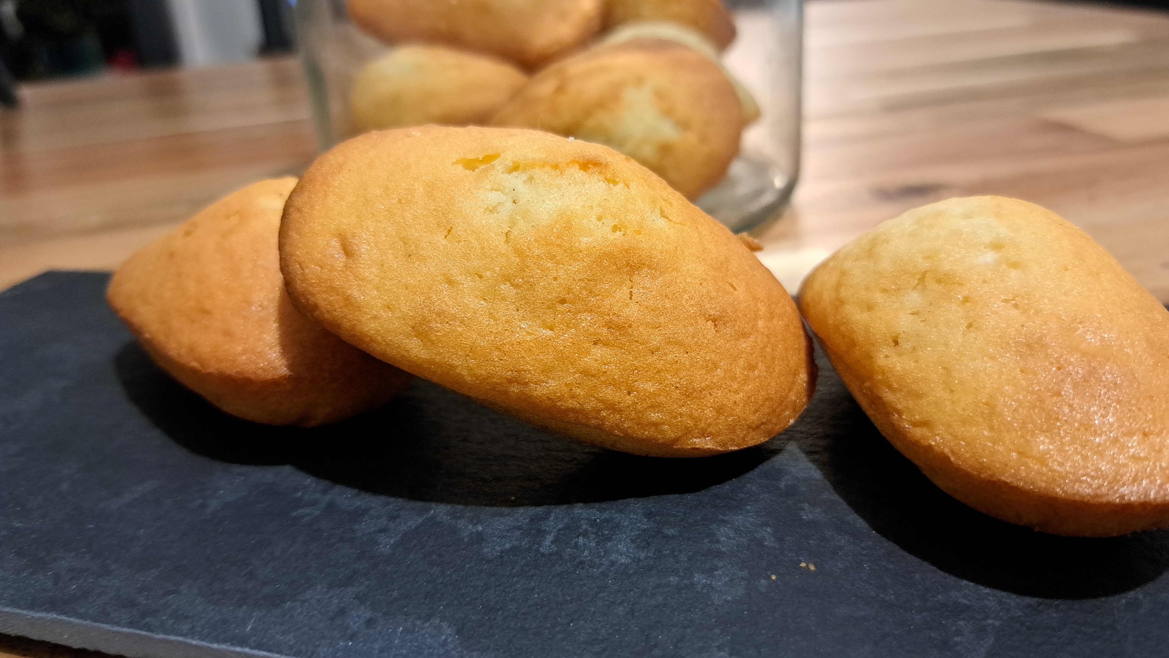 Aujourd’hui je vous propose une recette de madeleines. Dans cette recette, j’utilise de la fleur d’oranger mais il est possible d’utiliser de la vanille, ou ajouter des pépites de chocolat. Vous adaptez selon vos préférences. Le plus important c’est que les madeleines soient gourmandes, moelleuses et qu’elles aient cette fameuse petite bosse. Il vous faudra juste un moule à madeleines. Le mien est en silicone, mais je vous conseille quand même un moule en métal, parce que le mien a tendance à s’affaisser avec la chaleur et l’usure probablement. Avec cette recette, vous pourrez réaliser environ 16 madeleines. Comptez 10 minutes de préparation et 16 minutes de cuisson au four pour chaque tournée en fonction de votre moule.
