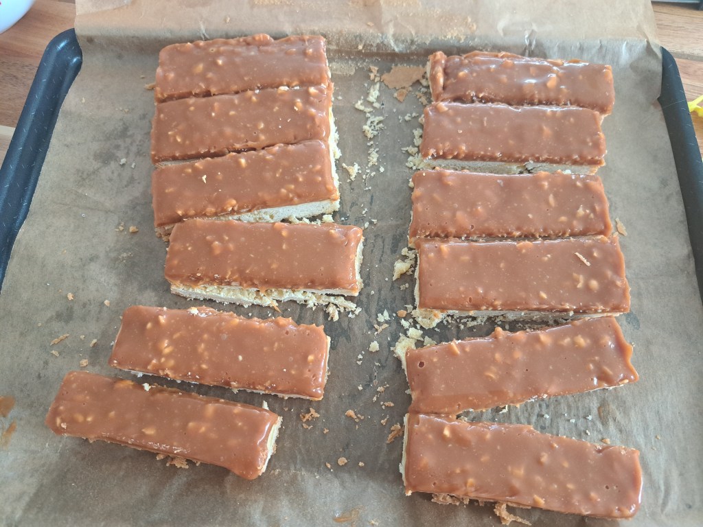 - Démouler à l’aide d’un couteau. Si vous avez utilisé comme moi un moule carré inox, découper à l’aide d’un couteau-scie des fingers de 3 x 9 cm.