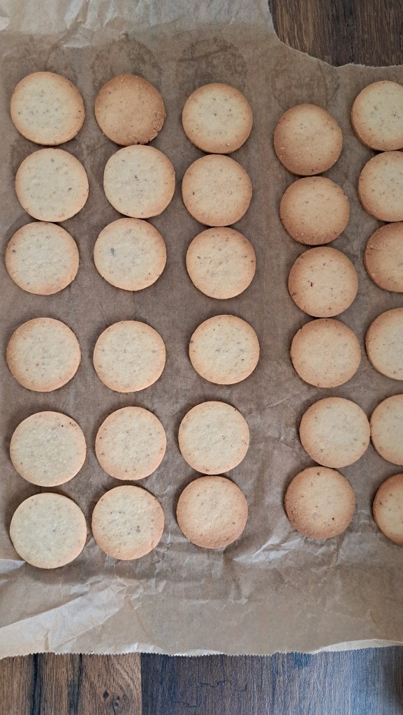 - A l’aide d’un emporte pièce ou d’un verre, découper des ronds, puis les disposer sur une plaque allant au four recouverte de papier sulfurisé.