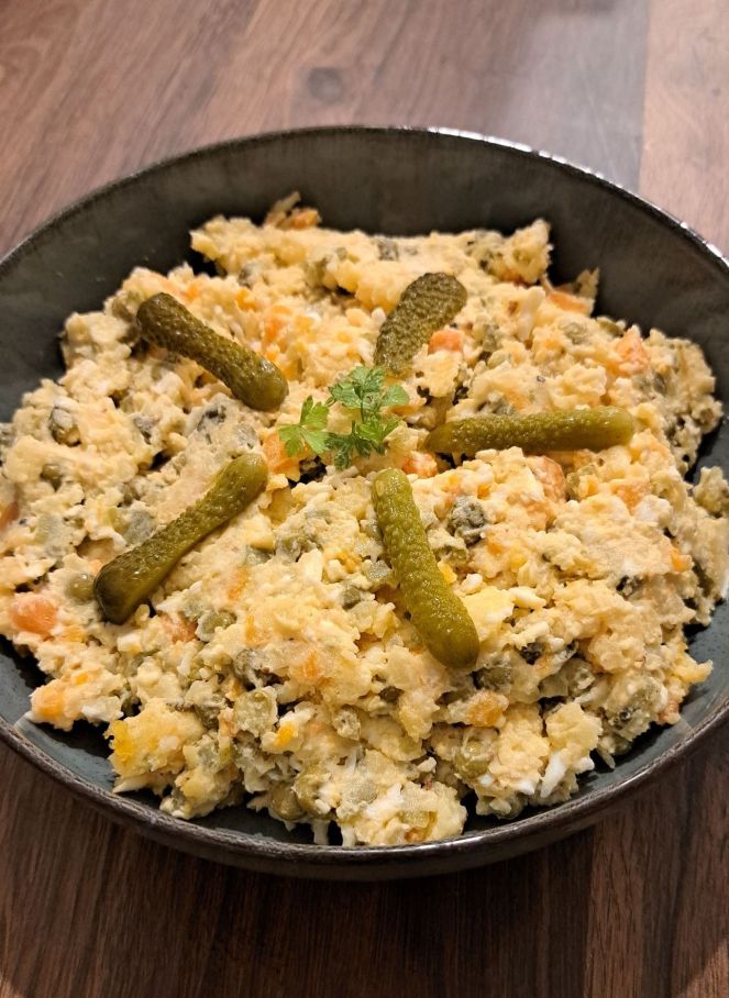 La salade olovieh, aussi appelée salade russe, est une entrée très populaire en Iran, mais on la retrouve aussi sur les tables russes.